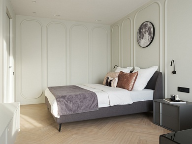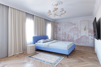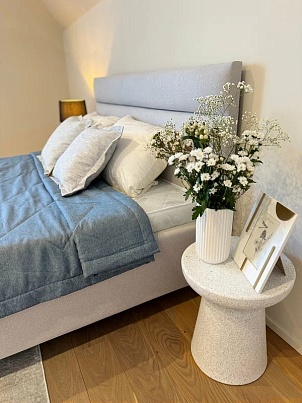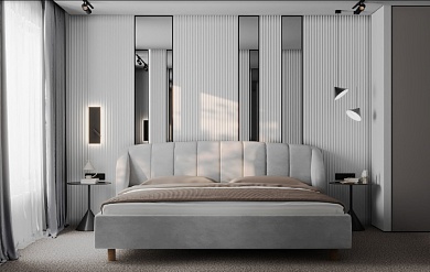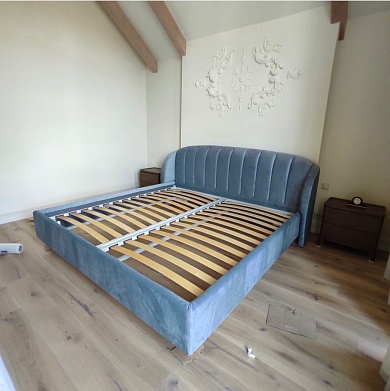Основание кровати на металлических ножках. Благодаря увеличенной высоте позволяют осуществлять легкую уборку под кроватью, даже с помощью робота-пылесоса.