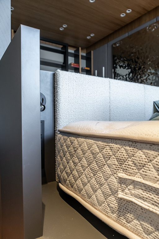 Возможна установка подъемного механизма со вместительным бельевым ящиком. Дно бельевого ящика легко сдвигается для обеспечения уборки под кроватью.